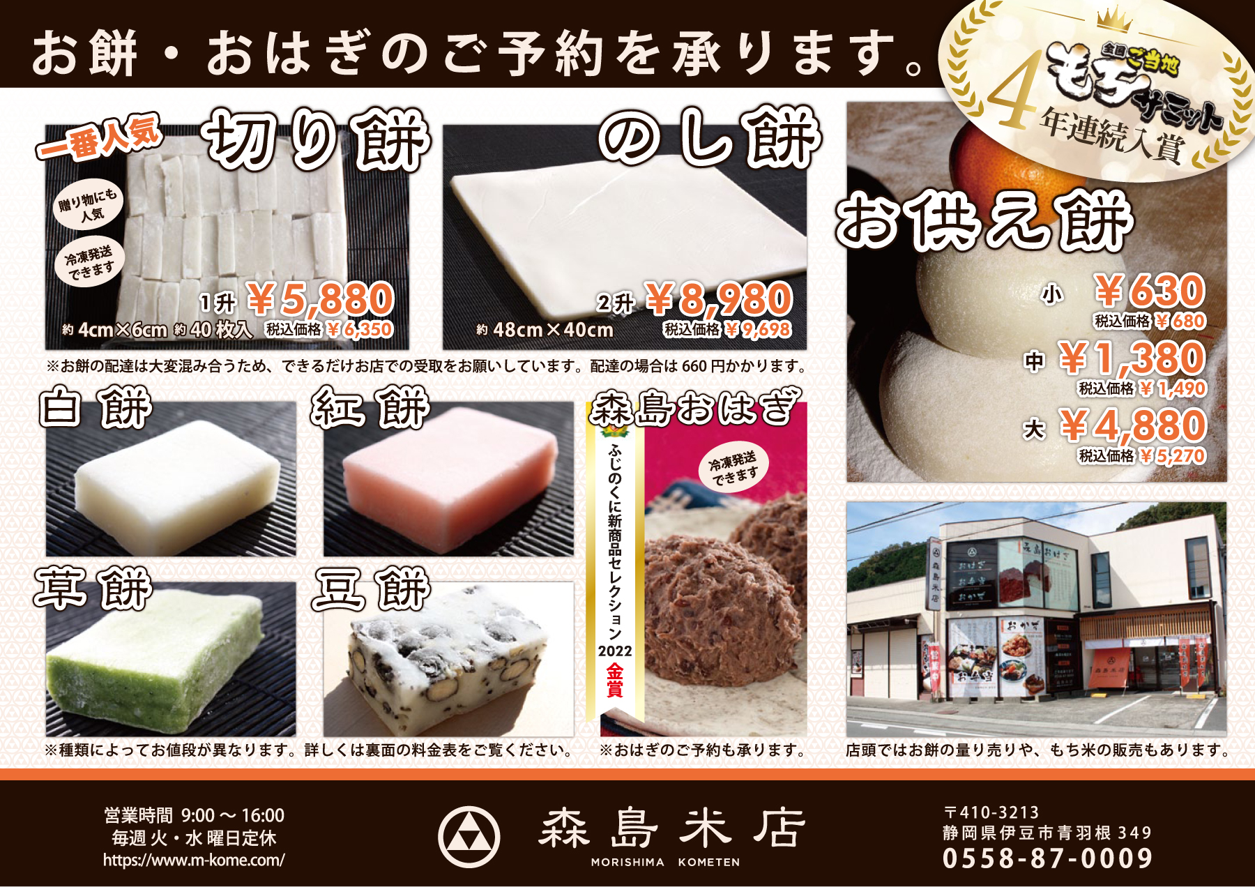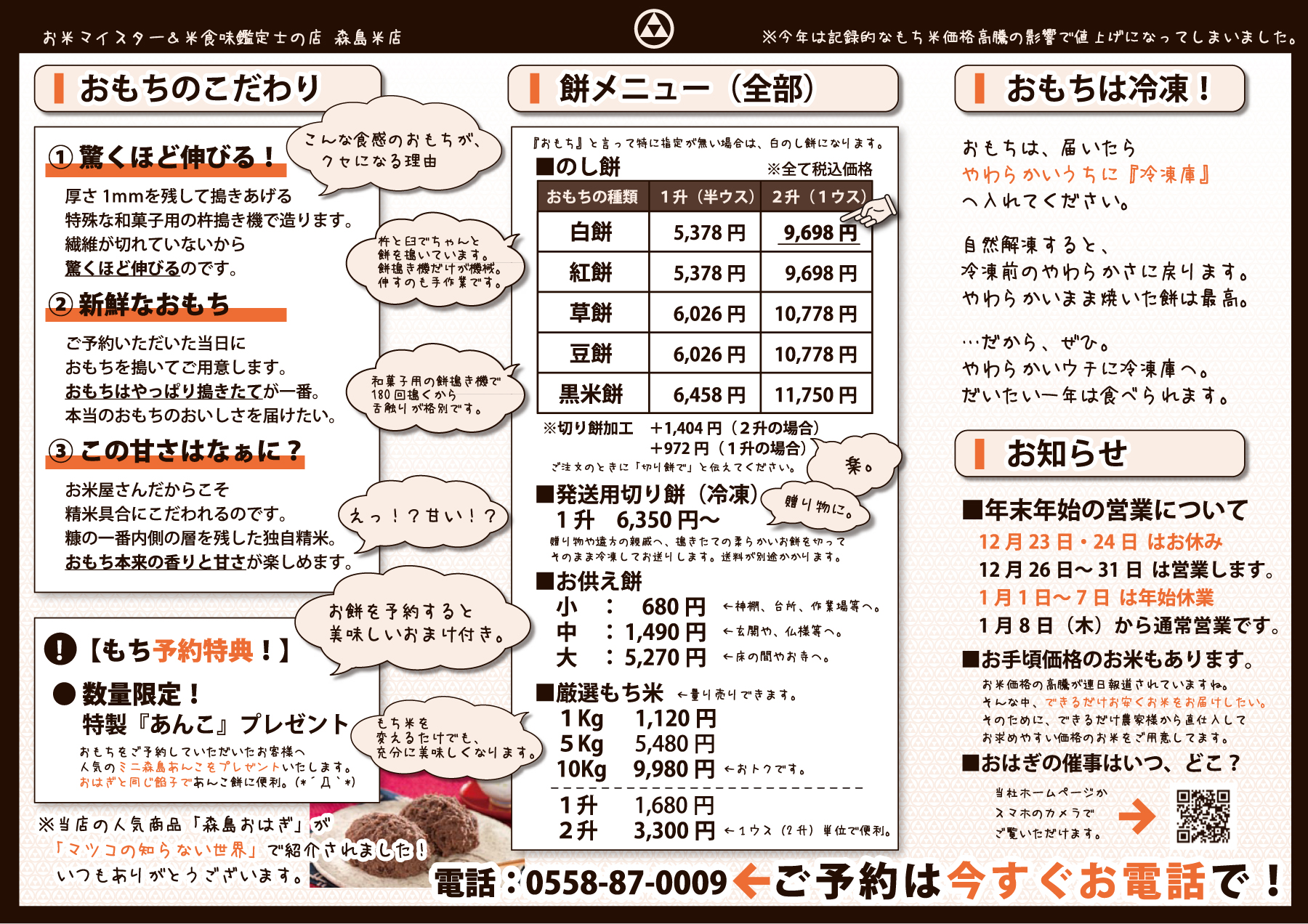 2025年度のおもちのページおよび予約チラシを更新しました。