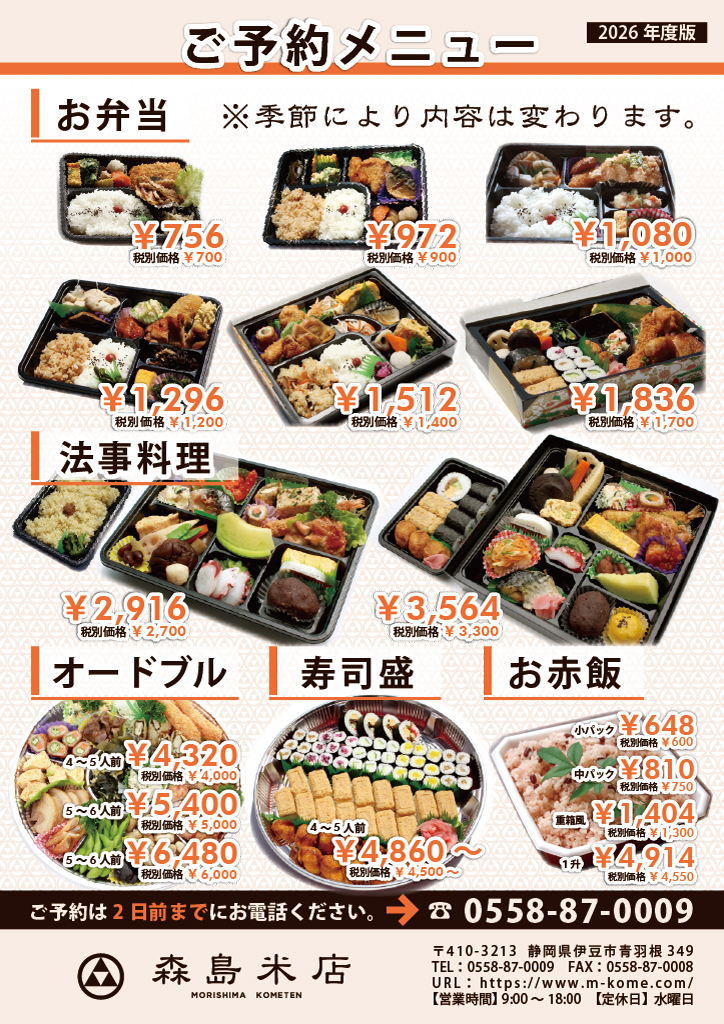 2026年度のお弁当チラシを更新いたしました。